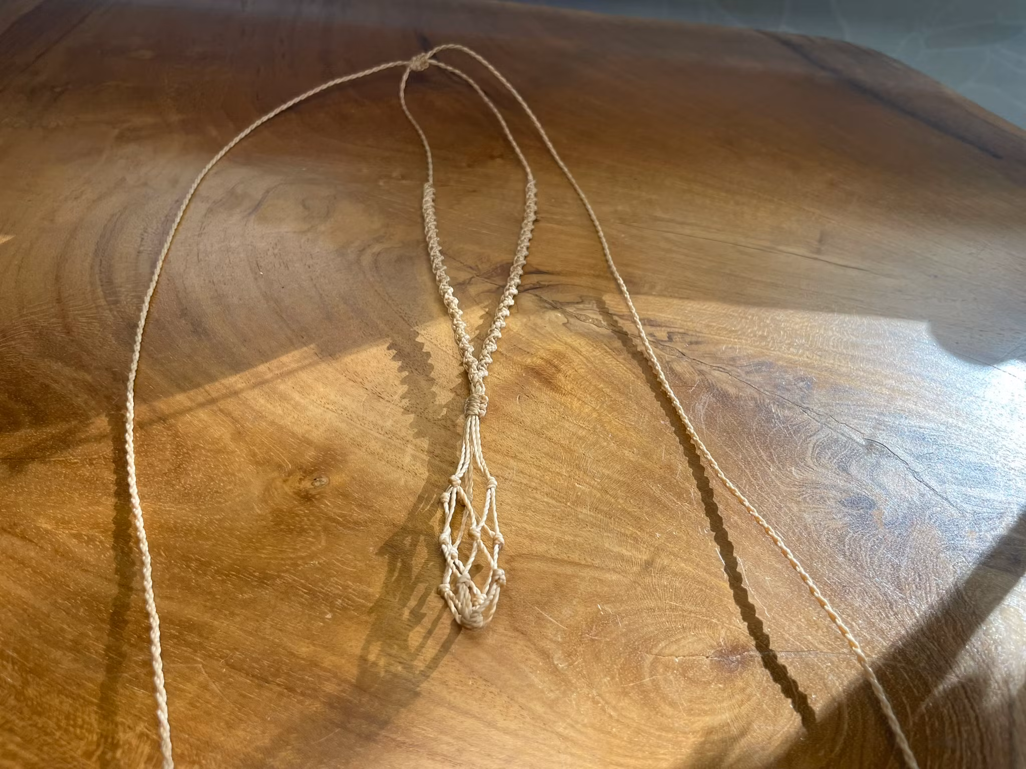 Handknuten i ljusbrun vaxad tråd